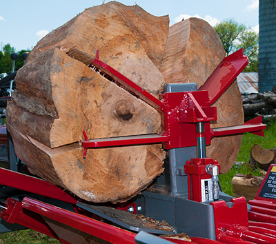 The TW-5 Log Splitter is available with optional table grate, six-way wedge, and hydraulic log lift.